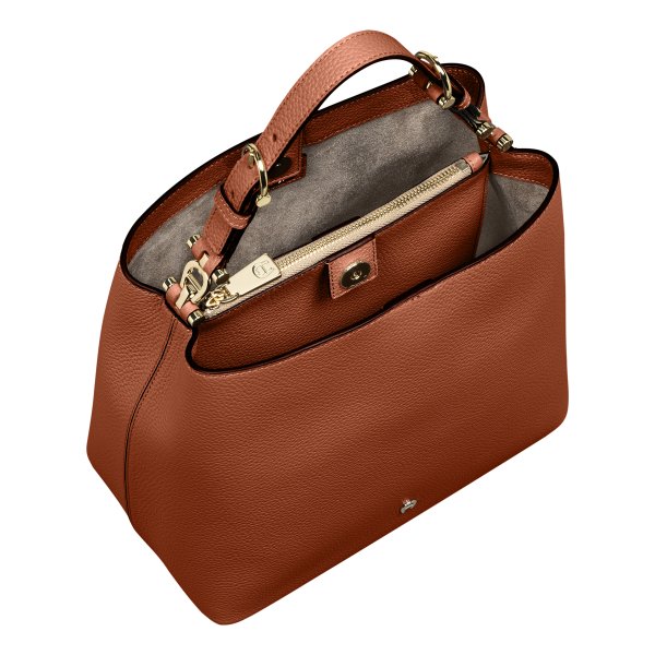 136189 |DELIA M |Cowhide|Hobo Bag|25.5H x 27W x 13D cm|Metal parts: shiny light gold|Grip height: 12 - 16,5 cm, verstellbar|Extra shoulder strap height: 50 - 55 cm, adjustable|Closure: magnetic closure|Interior:|Zip case: 1|Bottom studs: 4|grained leather|CH ECOS|100% neat leather (bos taurus)