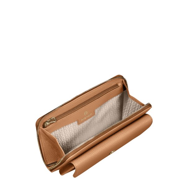 163207 |FASHION |Cowhide|Phone Pouch|11H x 20W x 4D cm|Metal parts: shiny light gold|Shoulderstrap height: 50 - 55 cm|Closure: zipper|Interior:|Credit cards: 6|Coins: 1|Exterior stick case with press button: 1|Diverse: 2|grained leather|CH ECOS|100% neat leather (bos taurus)