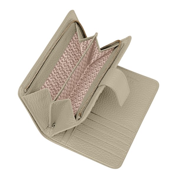 152232 |IVY |Cowhide|Combination wallet|RFID Blocker|9H x 10.5W x 3D cm|Metal parts: shiny light gold / shiny silver|Closure: press button|Interior:|Credit cards: 2|Coins: 1|Banknotes: 1|Diverse: 1|grained leather|CH ECOS|100% neat leather (bos taurus)