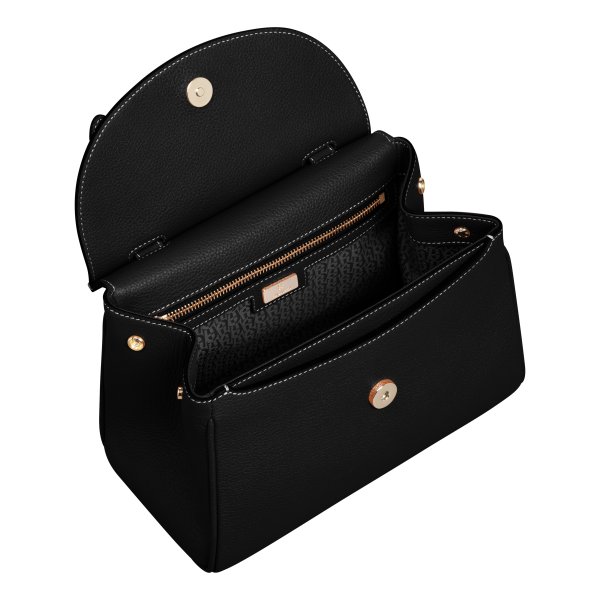 133281 |MIRANDA S |Cowhide|Handbag|29H x 24.5W x 12D cm|Metal parts: shiny light gold|Grip height: 9 cm|Shoulder strap height: 48 - 56 cm, adjustable|Closure: magnetic closure|Interior:|Stick case: 1|Zip case: 1|Bottom studs: 4