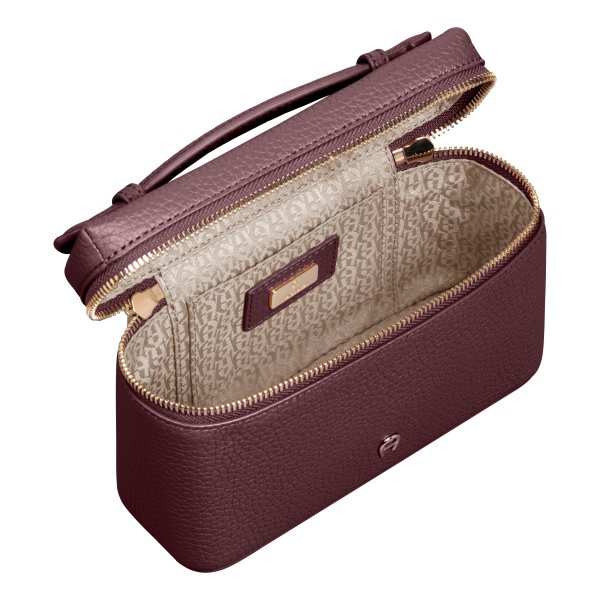 133056 |ZELDA XS |Cowhide|Handbag|13H x 20W x 7D cm|Metal parts: shiny light gold|Grip height: 4 cm|Shoulder strap height: 53 - 60 cm, adjustable|Closure: zipper|Interior:|Stick case: 1|grained leather|CH ECOS|100% neat leather (bos taurus)
